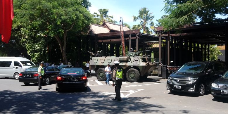 NUSA DUA, Jelang kedatangan Raja Arab Saudi, Salman bin Abdulaziz Al Saud, di Pulau Bali, Sabtu (4/3/2017) sore ini, beberapa panser kelihatan terparkir di depan St Regis sejak Sabtu siang.