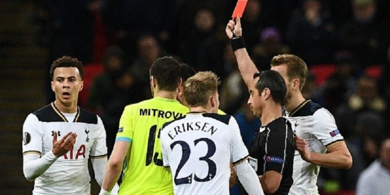 Alli diganjar kartu merah ketika Totenham melawan Gent dalam laga leg kedua babak 32 besar Liga Europa di Stadion Wembley pada 23 Februari 2017.