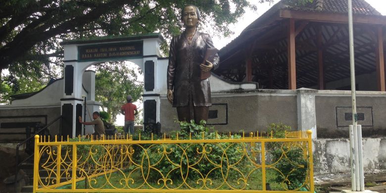 Saat Kompas.com berkunjung, tak ada peziarah yg datang. Hanya ada dua pengguna mobil yg mampir di sana dan berswafoto di depan patung RA Kartini di depan pintu masuk makam.
