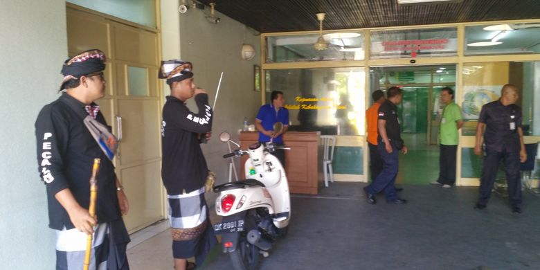 Wayan Sukmadita, Pecalang yang berasal Kepaon, kelihatan mengantar pasien yg membutuhkan penanganan medis.