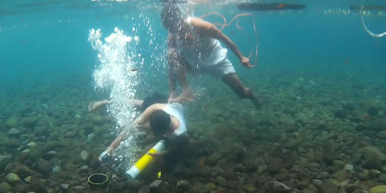Ratusan umat Hindu mengikuti setiap prosesi dengan penuh khusuk, begitu juga ketika dua umat menyelam buat mengambil air dari umbul mata air Ngabean.